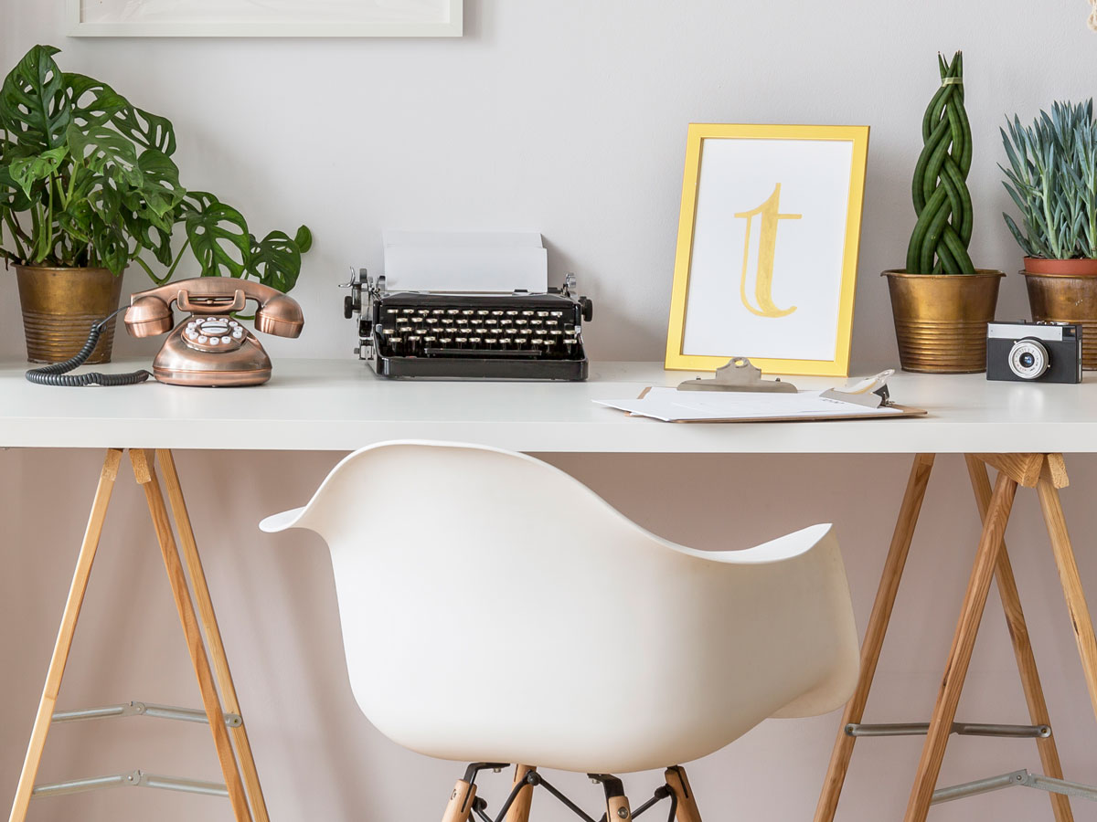 Białe biurka w kompozycji skandynawskiej